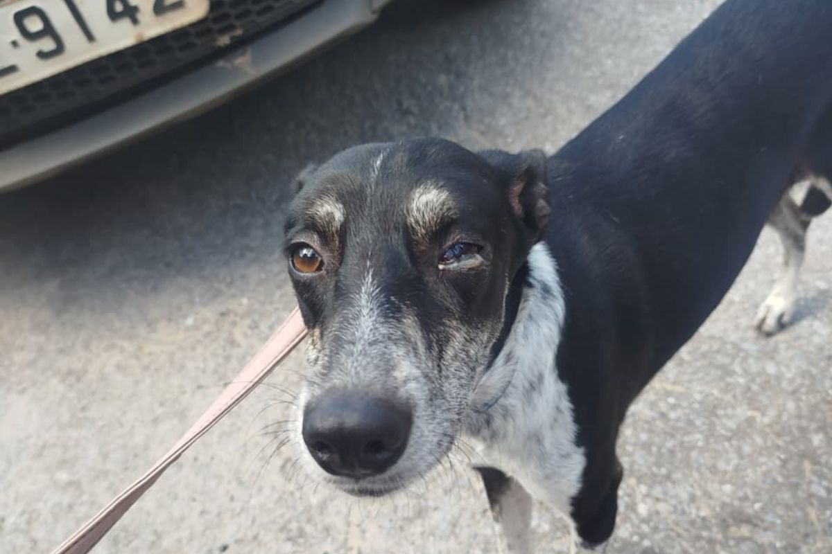 Cadela resgatada apresentava diversas lesões recentes no corpo, indicando sinais de agressão